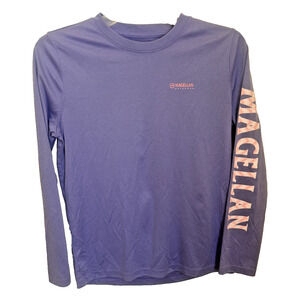 The Magellan Shirt is a versatile and performance-driven top designed for women who enjoy outdoor activities. This purple shirt in size L features a solid pattern, long sleeves with casual sleeves, and a round neckline with a pullover closure. Made from polyester, it is machine washable for easy care. The lightweight and moisture-wicking features make it suitable for all seasons, whether it's winter, summer, fall, or spring. Perfect for travel, casual wear, or workwear, this shirt from Magellan offers a comfortable and stylish option for any outdoor adventure.
