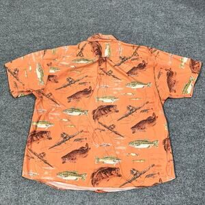Magellan Sportswear Salmon Pink Bass Fish Print Short Sleeve Button Up Shirt XL