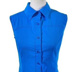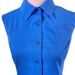 Magellan Women's Small blue sleeveless fishing gear button up mag wick shirt