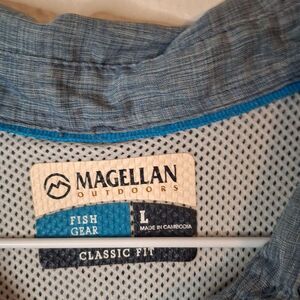 Magellan Outdoors Classic Fit Fish Gear Blue Men's Shirt Size Large
