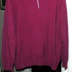 Excellent Condition on this Ladies Plus Size 3X that is a beautiful long-sleeved sweater. This is a pullover with a zip front with a lay down collar. No side slits.