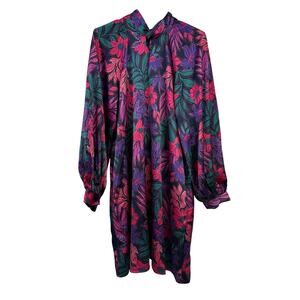 Magenta Dark Floral Flow Satin Dress ODDY Small Long Sleeve Short High Neckline