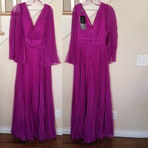 Magenta Formal Pleated Bell Sleeve Chiffon A-line Wedding guest Party Dress 12
