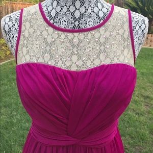 BRAND NEW! Magenta high-low dress with sheer overlay on chest and crystal details.