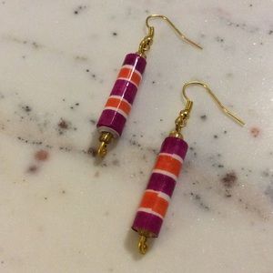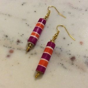 Show off your personal style with these unique earrings, handcrafted using paper & glass beads! To create these lightweight accessories, I covered paper strips with a vibrant design & hand-rolled each bead. They have been coated with water-resistant (NOT water-proof) varnish. A rain shower shouldn't damage the earrings. However, the beads should not be submerged in water (in a pool, for example). There are small glass beads at the top & bottom of each paper bead. The paper beads are 1 inch long.
