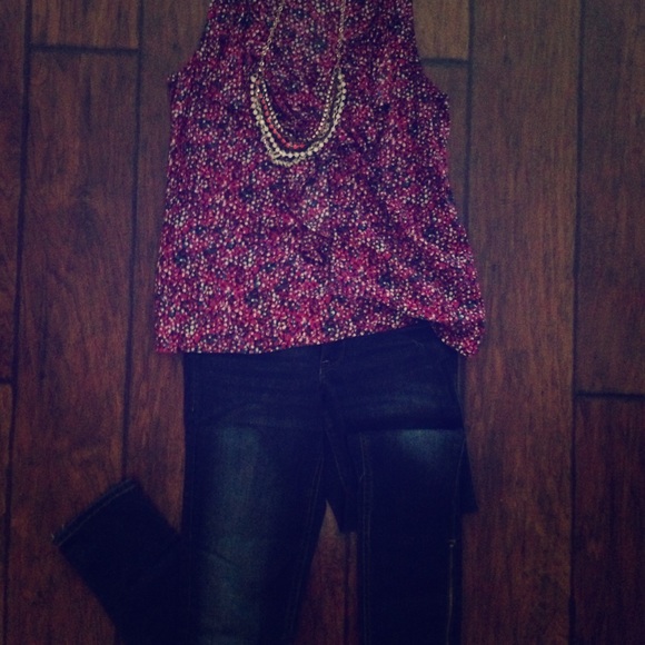 Perfect magenta patterned top. Light weight material makes it perfect for summer or with a cardigan in the fall. Can easily dress up with a necklace!