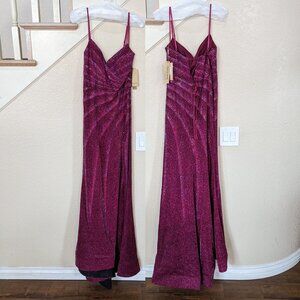 Magenta Sequin Sweetheart Metallic Formal Prom Evening Dress 16