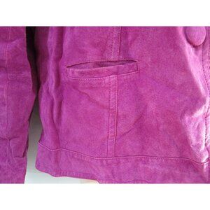 Magenta Suede Leather Jacket Button Closure Chicos Size 3 Ladies XL