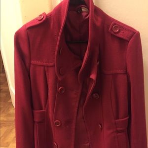 This is a magenta-colored pea coat from H&M. It is lightweight, very cute and stylish. It appears as new. Great buy!