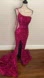 Magenta sparkly one shoulder tight fitting prom dress or evening gown