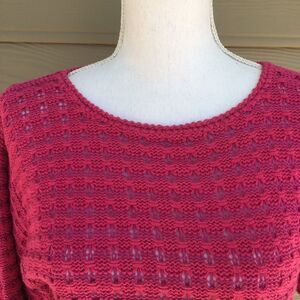 Chaus Womens Pullover Sweater Magenta Pink Long Sleeve Jewel Neck Open Knit M