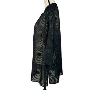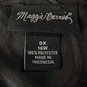 Maggie Barnes 0X-Large (16W) Top Button-Up Semi-Sheer Geometric 3/4 Sleeve Black