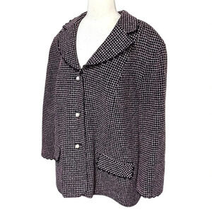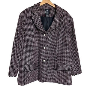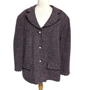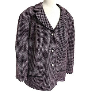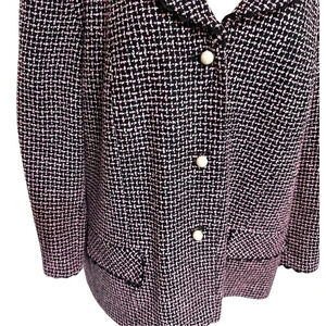 Maggie Barnes 26P pink & black tweed blazer w/ pearl buttons & black lace trim