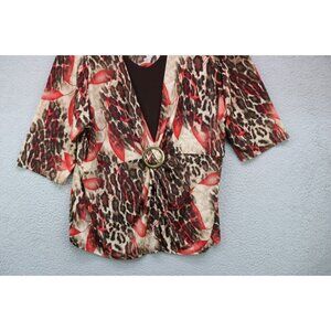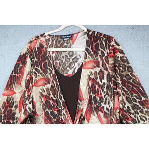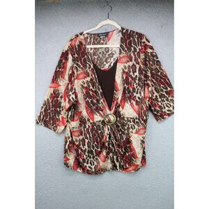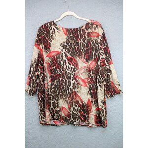 Maggie Barnes 3/4 Sleeve Silky Top-Size 2X-Animal Print