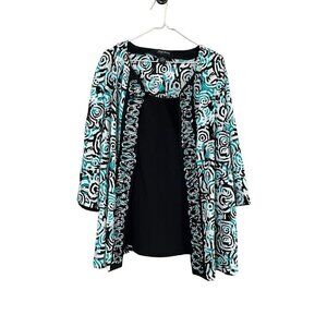 Maggie Barnes Artsy Cardigan 2X Blue Funky Retro Preppy Coastal Classic Resort