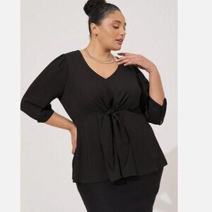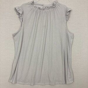 Maggie Barnes Black Gray Stretch Short Sleeve Rolled Tab Button Down 1X