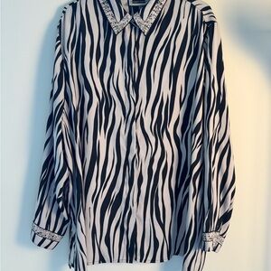 Maggie Barnes Black and Cream Long Sleeve Button Down Shirt 22W