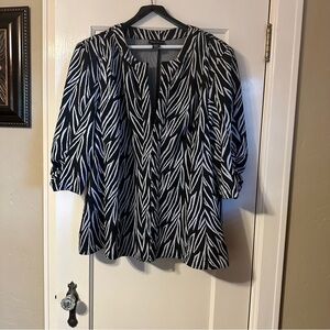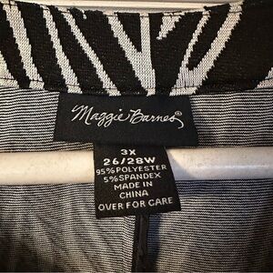 Maggie Barnes Blazer Black & White Zebra Print 3/4 Sleeve Glam Edgy 80s 3X