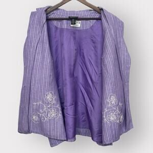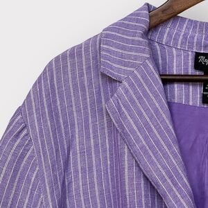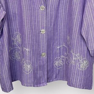 Maggie Barnes Blazer Jacket Women 3X Purple Linen Blend Lined 3/4 Sleeve Button