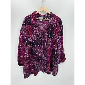 Maggie Barnes Button Down Shirt Women Purple Dark Floral Size 5X Collar Stretch