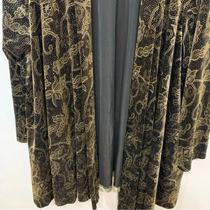 Maggie Barnes Cardigan Woman 3X Black Gold Floral Sparkle Open Flowy Velour