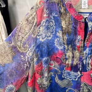 Maggie Barnes Catherines 3X Sheer Blouse Tank Set Paisley Floral Button Front