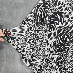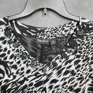 Maggie Barnes Chiffon Blouse 4X Animal Print Bead Embellished Black and White