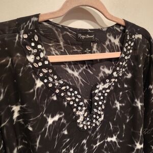 Maggie Barnes Embellished Black Print Chiffon Tunic Top Sz 2X Whimsigoth Fairy