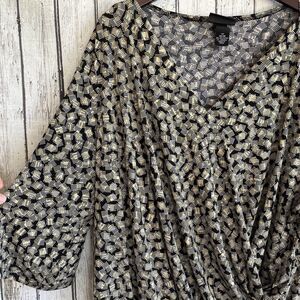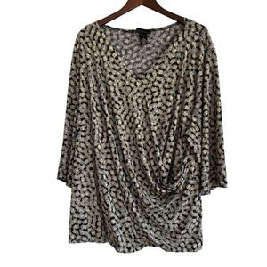 Maggie Barnes Faux Wrap Top Size 3X Stretch Drapey Geometric Church Office