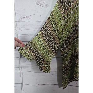 Maggie Barnes Green Ikat Print Bell Sleeve Button Down Tunic Top Womans Size 4X. Pre-owned