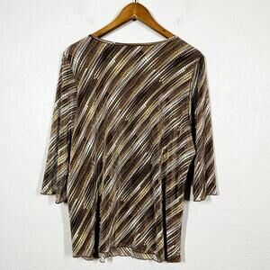 Maggie Barnes Keyhole Tunic Geo Mid Mod Print 3/4 Sleeve Loose Fit - 0X