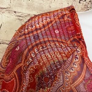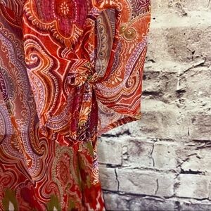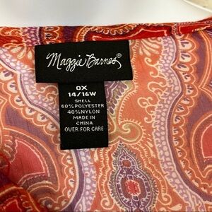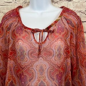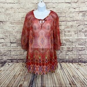 Maggie Barnes Orange Damask Print Keyhole Neck 3/4 Sleeve Blouse