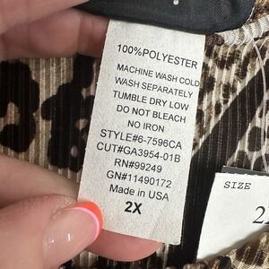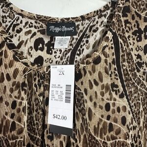 Maggie Barnes Pleated Top Womens Plus Size 2X Animal Print 3/4 Sleeve New