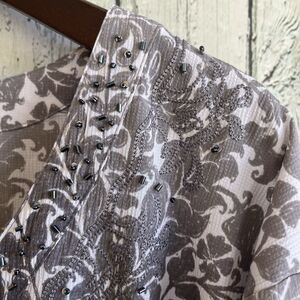 Maggie Barnes Popover Top Size 4X Gray Ombre Paisley Beaded Embroidered Office