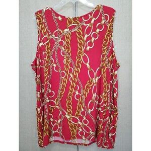 This is a Maggie Barnes Red Chain Print Stretchy Button-Up Jacket with Tank Top Size 2X. 2 piece set.
