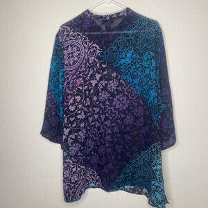 Maggie Barnes Sheer Button-Up Tunic Top Womens 2X 22/24W Colorful Purple Blue Ar