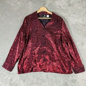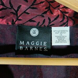 Maggie Barnes Shirt Womens 1X Red Top Black Metallic Button Up Blouse