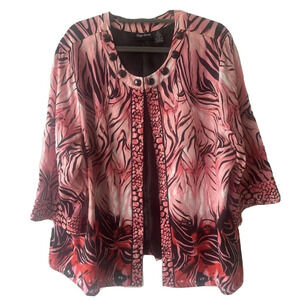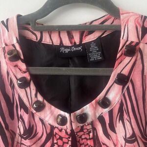 Maggie Barnes Size 2X Lagenlook Multicolor Linen Blend Open Front Swing Jacket Pink and Black Tiger Stripes Animal Print 3/4 Length Sleeve