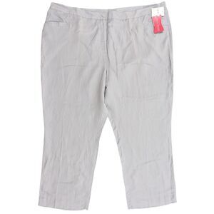 Maggie Barnes Straight Leg Pants Women Size 32W Gray Linen Blend Secret Slimmer