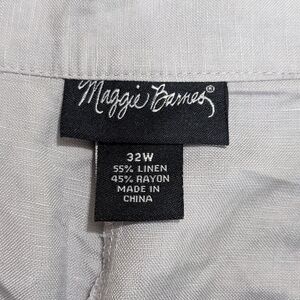 Maggie Barnes Straight Leg Pants Women Size 32W Gray Linen Blend High-Rise Elastic Waist Pockets Zip Fly with Button Closure