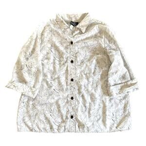 Maggie Barnes Textured Button Shirt Plus 20W Roll Tab Resortwear Tropical Vaca