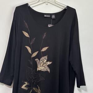 Maggie Barnes Top 1X Plus Black Gold Leaves 3/4 Sleeve Popover Fall Shirt NEW