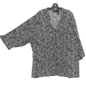 Maggie Barnes Top 3/4 Sleeve Y2K Coastal Grandma Minimalist Boho Button Black 3X