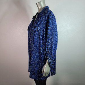 Maggie Barnes Top Plus Size 2X 22/24W Tab Sleeve Stretch Collared Button Up Blue Pockets Long Sleeve Casual