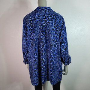 Maggie Barnes Top Plus Size 2X 22/24W Tab Sleeve Stretch Collared Button Up Blue