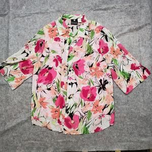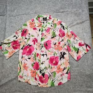 Maggie Barnes Top Womens 28W Twofer Button Front Half Sleeve Floral Watercolor