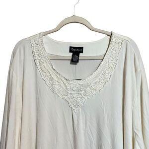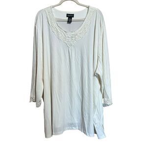 Maggie Barnes Tunic Top Womens 5X 34 36W Ivory Stretch Blouse Ladies