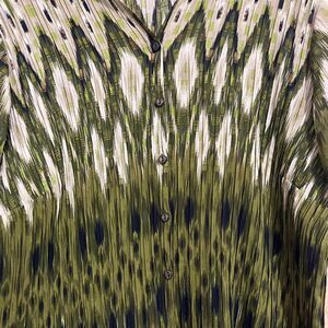 Maggie Barnes Women Green Multi Geometric Print in Textured Fabric Casual Top Size-3X