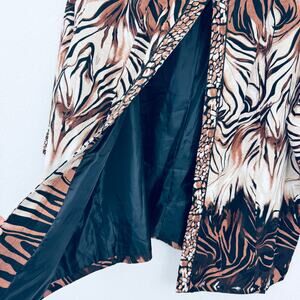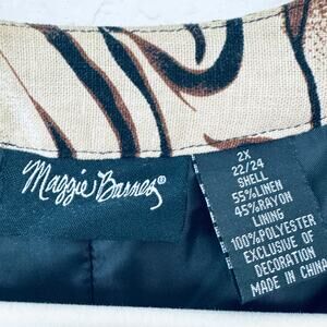 Maggie Barnes Women Jacket Size 2X Animal Print Linen Blend Open Black Brown