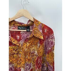 Maggie Barnes Women Tunic Size 2X Button Down Artsy Pleated Unique Top